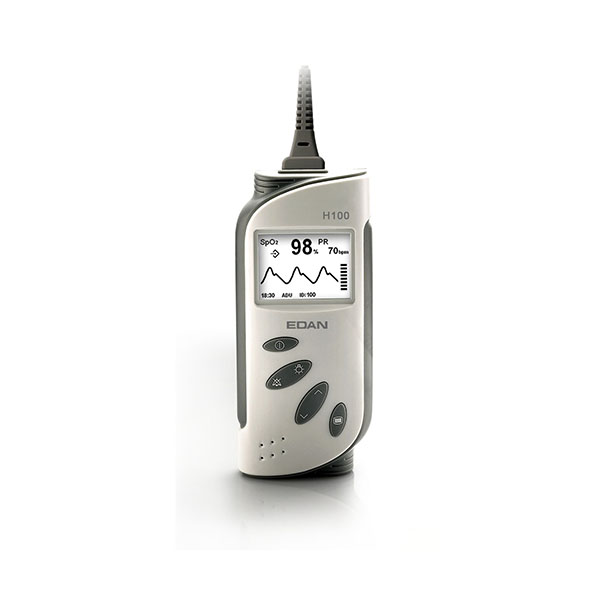 Pulsoximetro de Mano SpO2 Edan Pantalla Blanco y Negro a Baterías Alcalinas. Hasta 100 ID y 300 horas de Capacidad de Almacenamiento de Datos para el Monitoreo Continuo.
