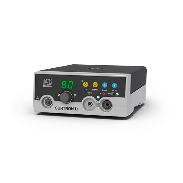 SURTRON 80D es un electrobisturí de radiofrecuencia idóneo para pequeña cirugia monopolar. Dispone de corte (CUT), corte y coagulación (BLEND), coagulación (COAG) y micro-coagulación (MICRO).